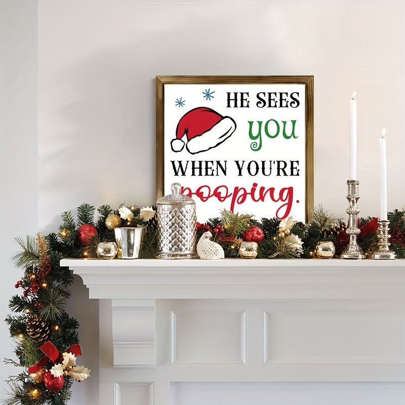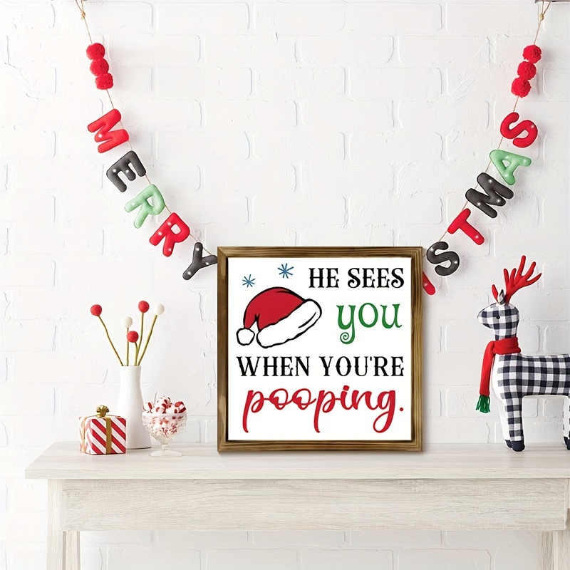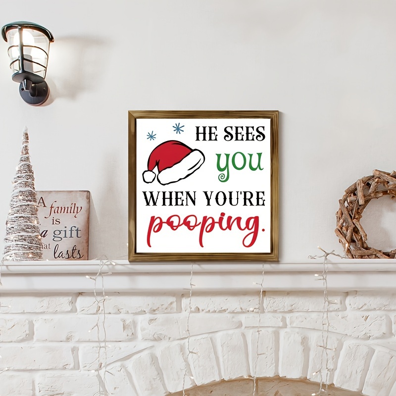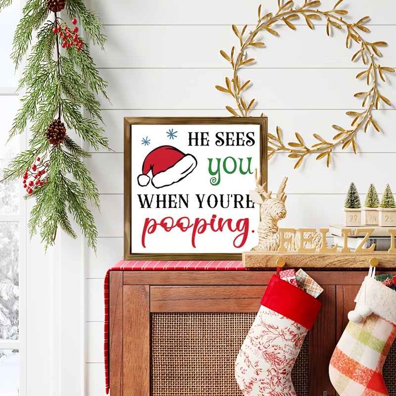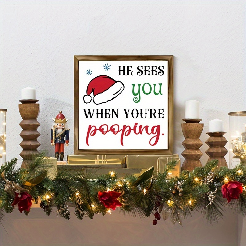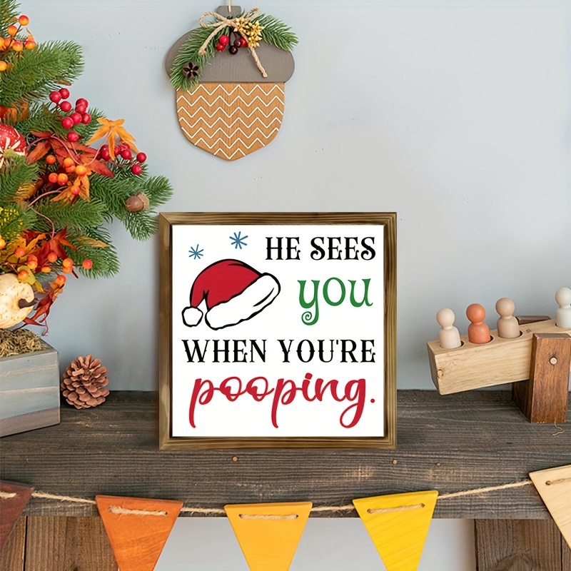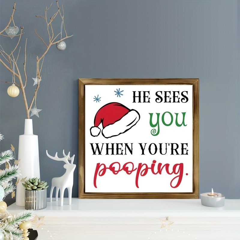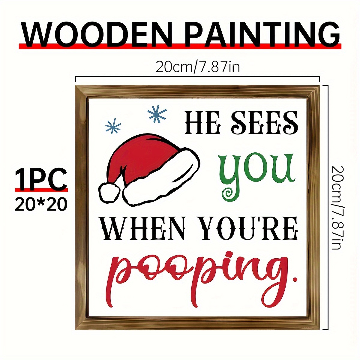 Home > 1 Wooden Vintage Wall Sign 'He Watches You Poop Multi-Purpose Farmhouse Christmas Decoration, Holiday Home Wall Decor, Canvas Wall Art