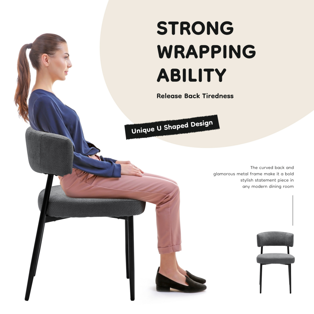 【Ergonomic Curved Backrest Design】The curved backrest on these upholstered dining chairs promotes excellent posture and reduces back strain, making them perfect for extended sitting in dining rooms or home offices.