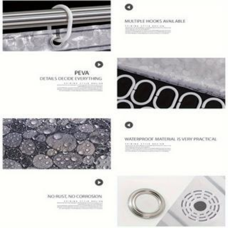 *Discover the Ultimate Shower Experience with METABEST! ** Introducing the METABEST 3D Pebble Pattern Shower Curtain Liner, the perfect addition to your bathroom! This innovative shower curtain liner features a stunning 3D pebble pattern that not only adds a touch of elegance to your space but also enhances water repellency. **Premium Quality Meets Durability** Crafted from durable PEVA material, our shower curtain liner is designed to withstand daily use while maintaining its shape and beauty. The heavy-duty magnets embedded within ensure a tight seal, keeping water confined to the shower stall or bathtub. Say goodbye to wet floors and hello to a dry, safe bathroom environment! **Ideal for Any Bathroom Setup** Measuring 71x71 inches, this shower curtain liner is the ideal size for most shower stalls and bathtubs. And to make installation a breeze, it comes with 12 sturdy hooks that securely attach to your curtain rod. With the METABEST 3D Pebble Pattern Shower Curtain Liner, upgrading your bathroom has never been easier or more stylish. **Transform Your Bathroom Today! ** Elevate your shower routine and give your bathroom a fresh, modern look with the METABEST 3D Pebble Pattern Shower Curtain Liner. Don't settle for ordinary bath curtains – experience the difference with our premium, high-quality liner. Order yours now and enjoy a luxurious shower experience every single day!