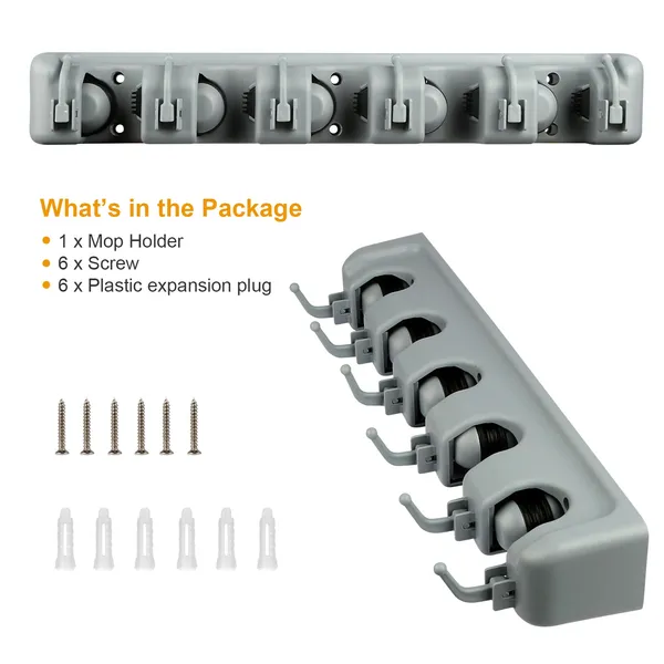 **Easy to Install*:Our product with a mounting kit including screws and anchors is easily to be installed. If you follow the clear step-by-step graphic instructions,everyone can install the mop holder in few minutes.