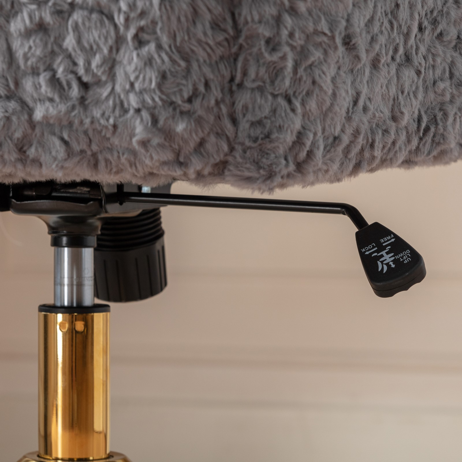 Home > AA Furniture Office Chair,Artificial Rabbit Hair Home Office Chair With Golden Metal Base,Adjustable Desk Chair Swivel Office Chair,Vanity Chair Gray