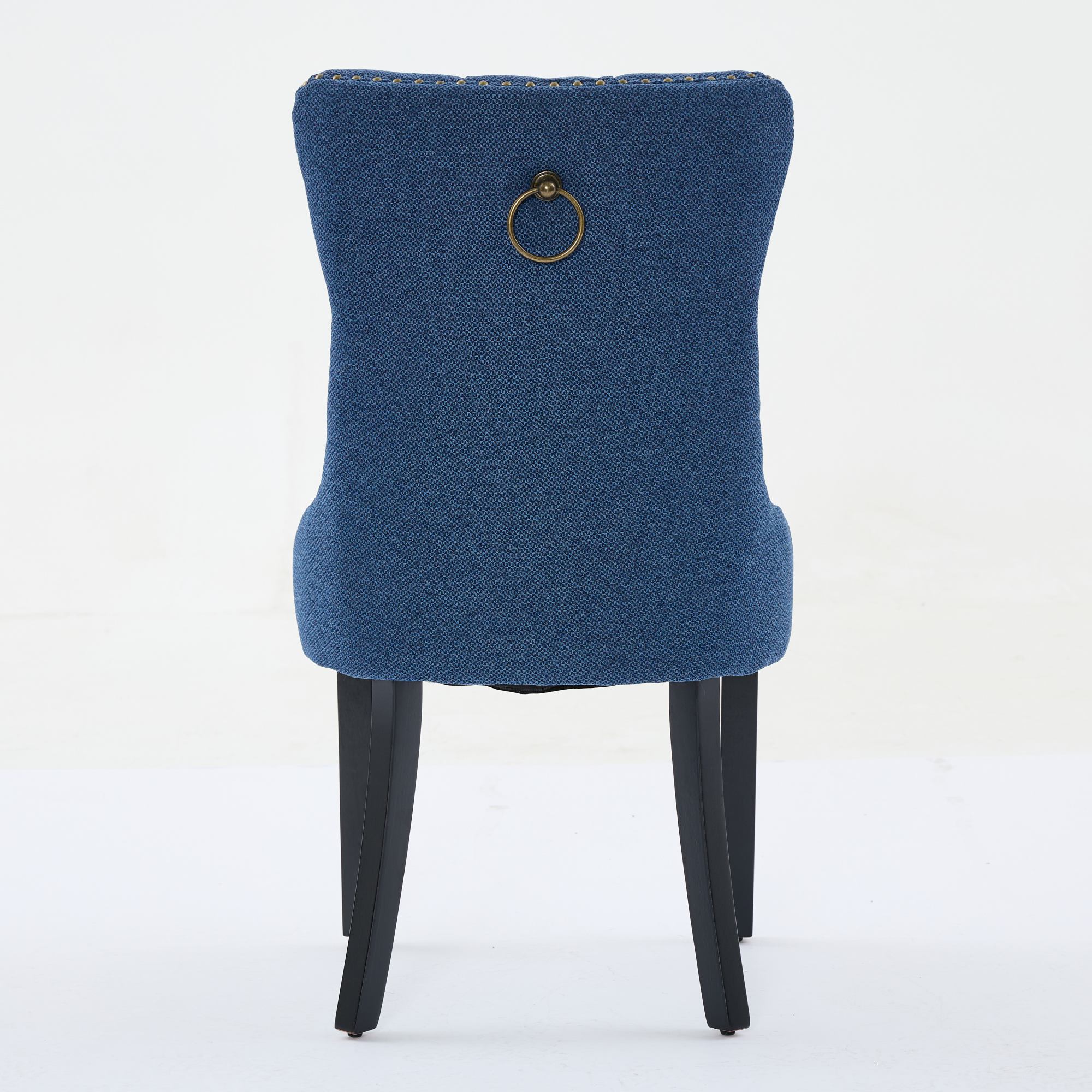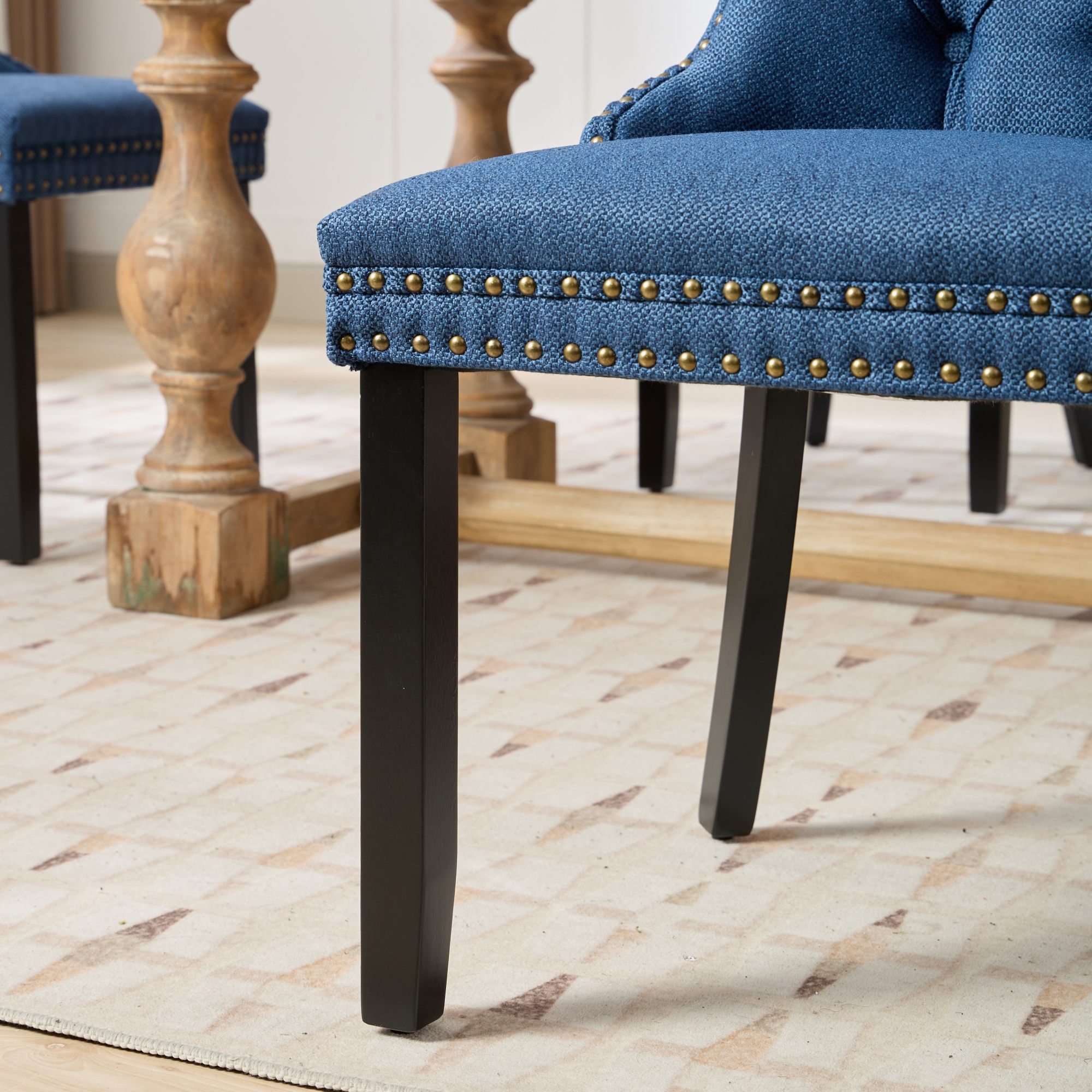Nikki Modern, High-end Tufted Solid Wood Contemporary Flax Upholstered Linen Dining Chair With Wood Legs Nailhead Trim 2-Pcs Set,Blue Linen, SW6801BL