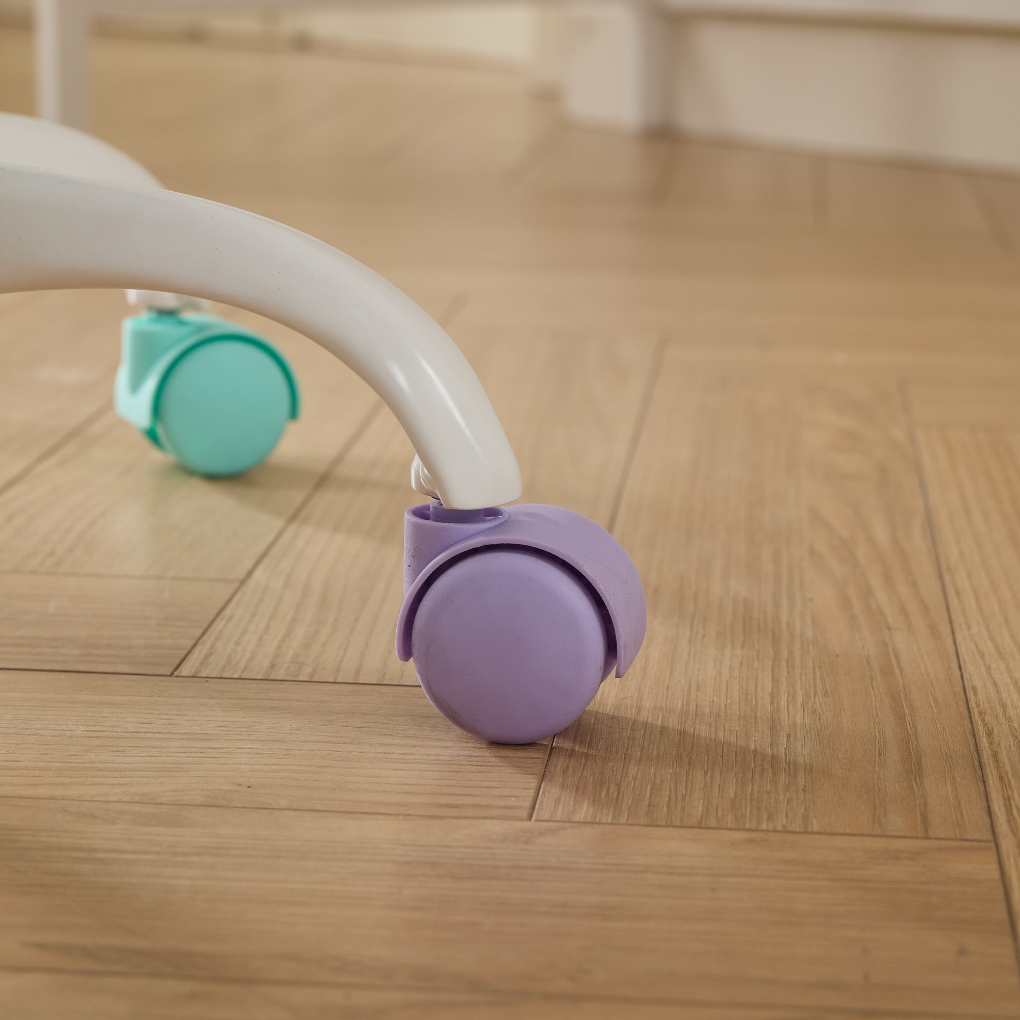 • The enlarged snow-white base ensures safety and stability, complemented by colorful wheels that exude cuteness and vitality. It is perfectly suited for placement on a female vanity or in a children's room.