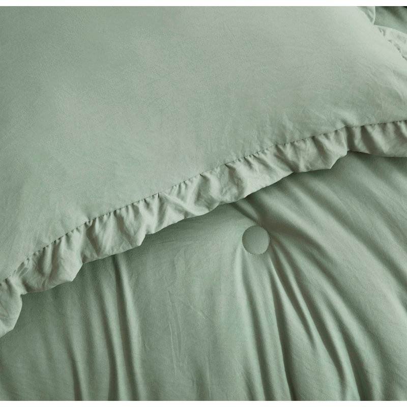 Oversized King Sage Microfiber 3-Piece Comforter Set with Ruffled Edge Trim